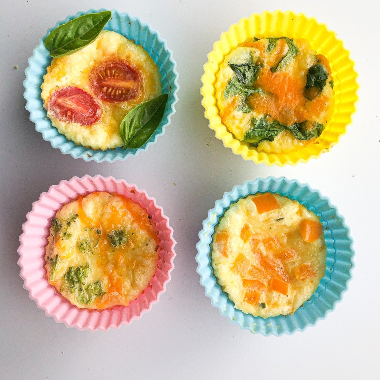 Build your own egg bites with options such as: Basil and Tomato, Spinach and Cheddar Cheese, Broccoli Cheddar, Bell Pepper and Cheese.